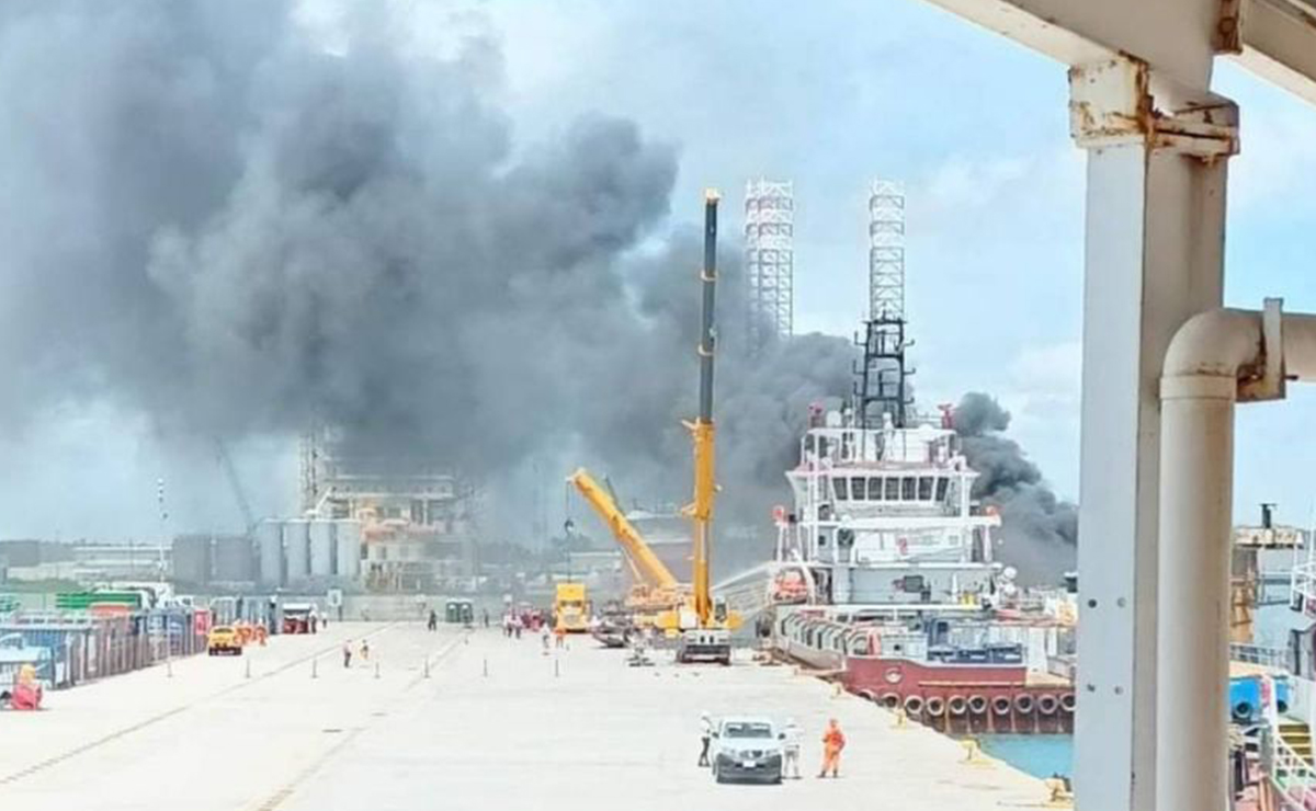 Tras el incendio, al lugar llegaron los elementos de emergencia a la planta para controlar el siniestro; se sabe que dañó severamente una plataforma estacionada en el muelle número dos, de la terminal marítima.