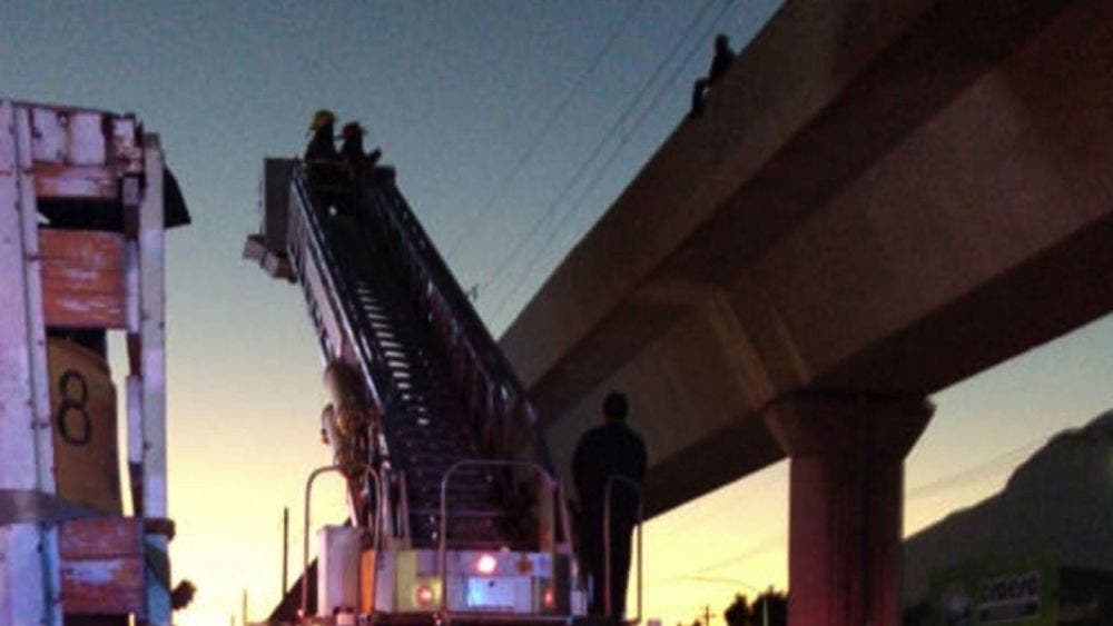 Al llegar, los elementos de Bomberos utilizaron una grúa para llegar hasta lo alto de la estructura del Metro para intentar dialogar con él y disuadirlo.