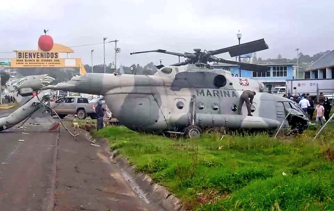 Luego de accidente, y ante el recuento de daños, se supo que el helicóptero de la Secretaría de la Marina sufrió el desperfecto y cayó en la Unidad Deportiva Municipal en la cabecera municipal del municipio hidalguense Agua Blanca, la mañana de este miércoles