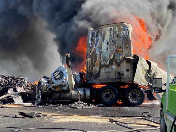 Antes, impactó a otro tractocamión que terminó dentro de un barranco, cuyo operador, identificado como Adán Servín de 39 años, resultó lesionado, el chofer que falleció incinerado en la cabina del trailer, fue identificado solamente como Roberto, de 51 años.