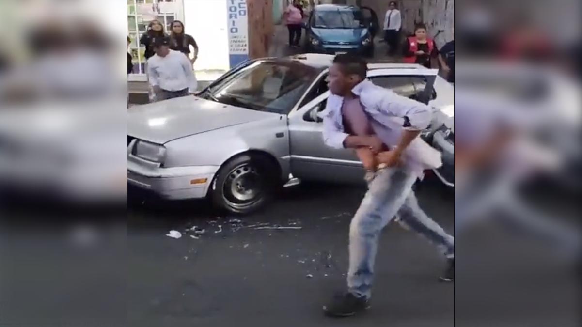El video grabado por vecinos de la colonia San Lorenzo Atemoaya, muestra los momentos en el que el estresado tipo reclama al conductor afectado, pero al ser encarado por este se baja a discutir.