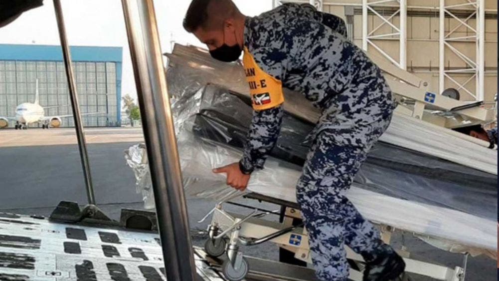 Como parte de un operativo de seguridad para que lleguen a los hospitales que atenderán a pacientes por Covid-19; los elementos de la Guardia Nacional participan en el traslado de insumos y equipos médicos, que se están adquiriendo en el extranjero.