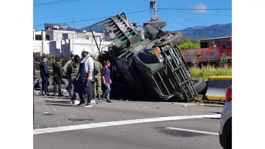 A causa de la volcadura de un camión militar en el estado de Puebla, dos soldados del Ejército Mexicano resultaron lesionados; el vehículo circulaba sobre la autopista México Puebla, dirección Puebla.