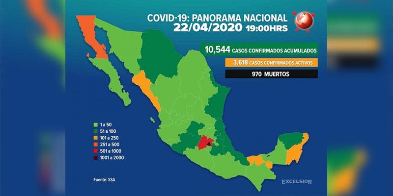 Ya son 10 mil 544 casos positivos de Covid-19 en México.- Autoridades de la Secretaría de Salud, informaron que el número de personas infectadas por Covid-19 es de 10 mil 544 en México.