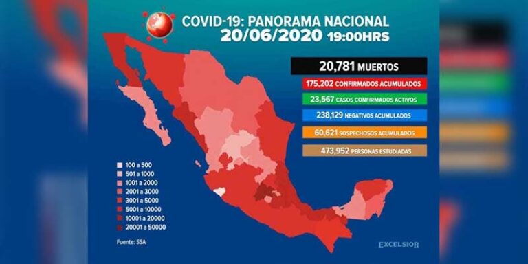 Ya son 20 mil 781 muertos por Covid-19 en México.- Autoridades de la Secretaria de Salud indicaron que ya son 20 mil 781 muertos por Covid-19 en México