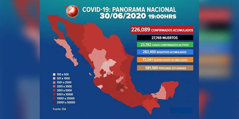 Ya son 226 mil 089 casos positivos de Covid-19 en México.- Autoridades de la Secretaria de Salud indicaron que ya son más de 226 mil casos positivos de Covid-19 en México.