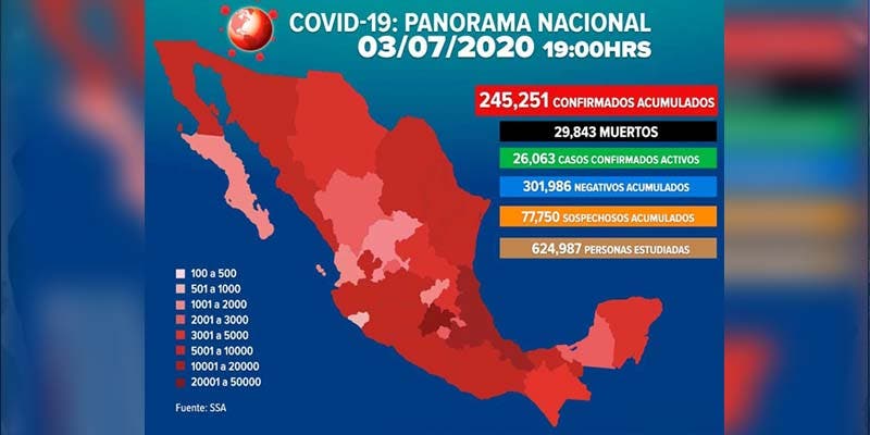 Ya son 245 mil 251 casos positivos de Covid-19 en México.- Autoridades de la Secretaria de Salud indicaron que ya son más de 245 mil casos positivos de Covid-19 en México.