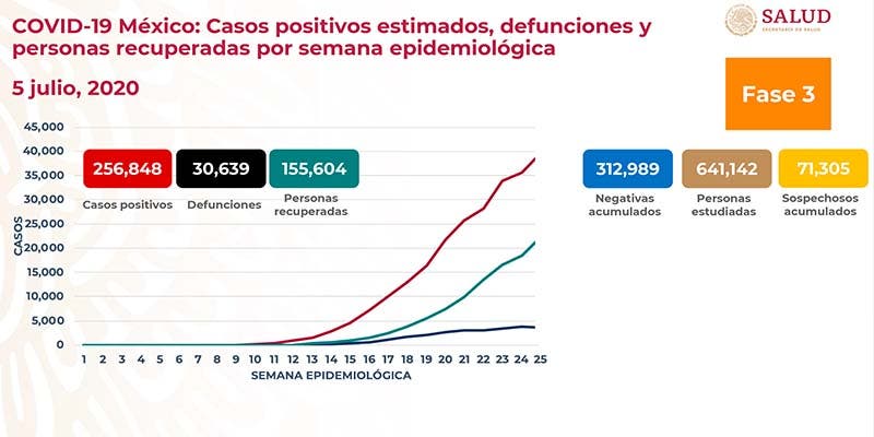 Ya son 256 mil 848 casos positivos de Covid-19 en México.- Autoridades de la Secretaria de Salud indicaron que ya son más de 256 mil casos positivos de Covid-19 en México.
