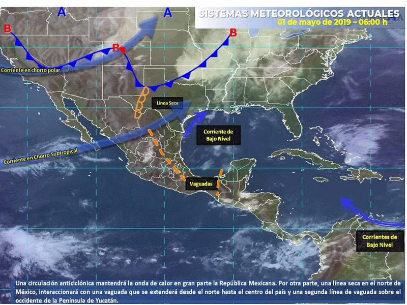 Cancún, Quintana Roo. El Sistema Meteorológico Nacional (SMN) informó que para este miércoles 1 de mayo habrá una circulación anticiclónica mantendrá la onda de...