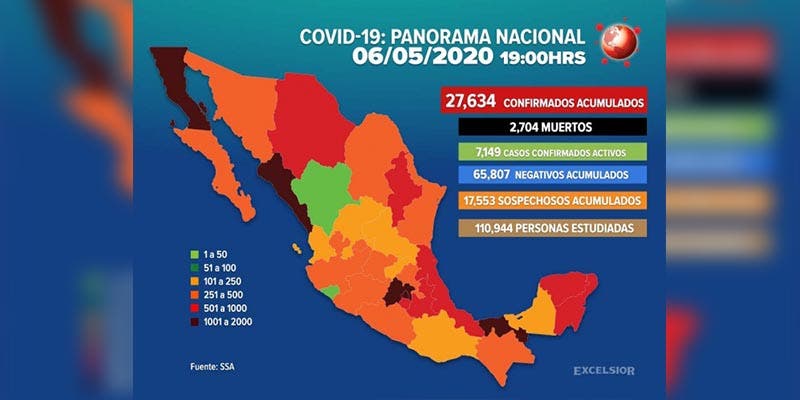 Suman 27 mil 634 casos positivos de coronavirus en México.- Las autoridades de la Secretaría de Salud federal informaron en conferencia de prensa el...