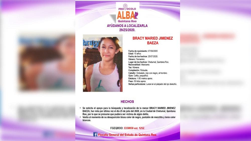 Buscan autoridades a menor de edad desaparecida.- Autoridades de la Fiscalía General del Estado (FGE) buscan a la menor de edad Bracy Maried Jiménez...