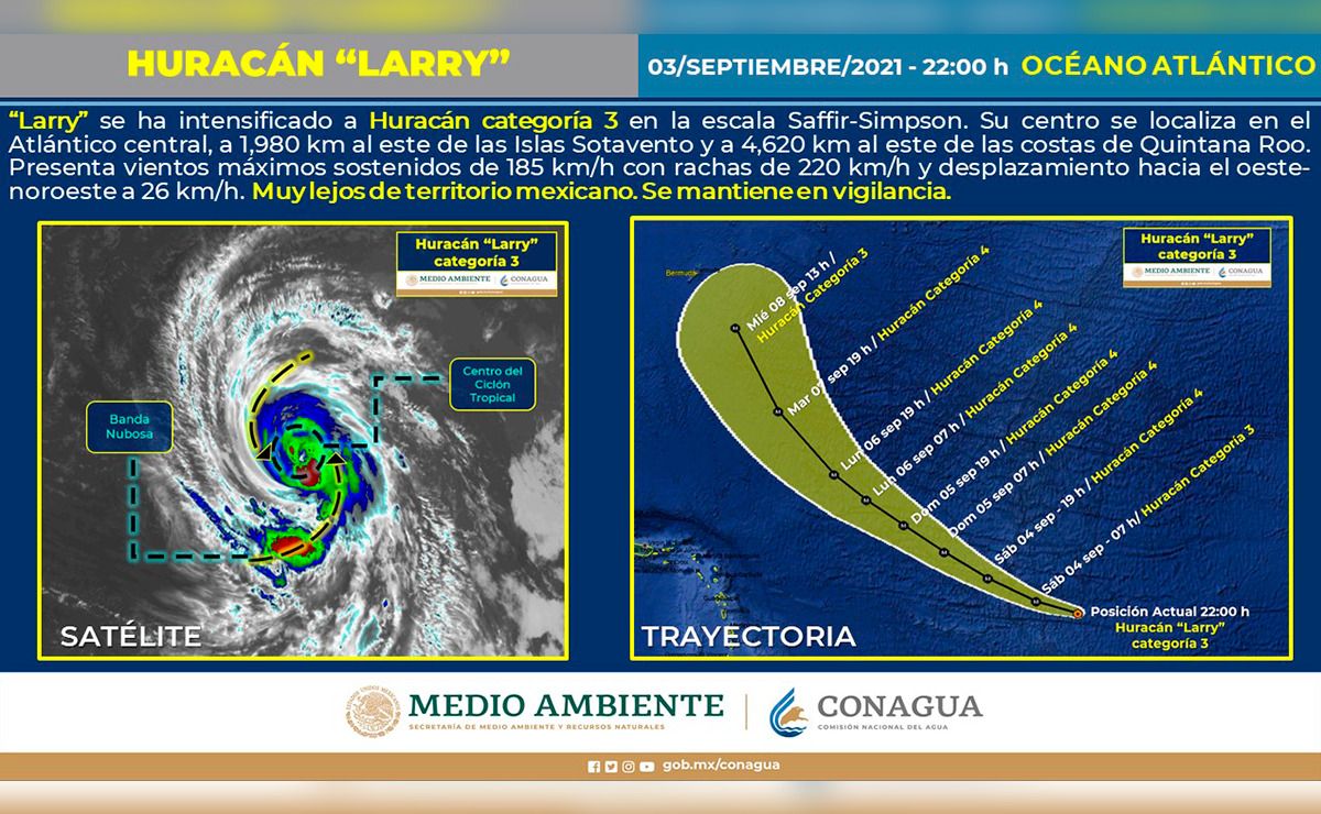 Cancún El huracán «Larry» ya es categoría tres y sigue creciendo Aunque aún lejos de las costas del territorio nacional de México, «Larry» que augura ser un devastador huracán ascendió ya a la categoría tres... Armando Anguloviernes, 3 de septiembre, 2021