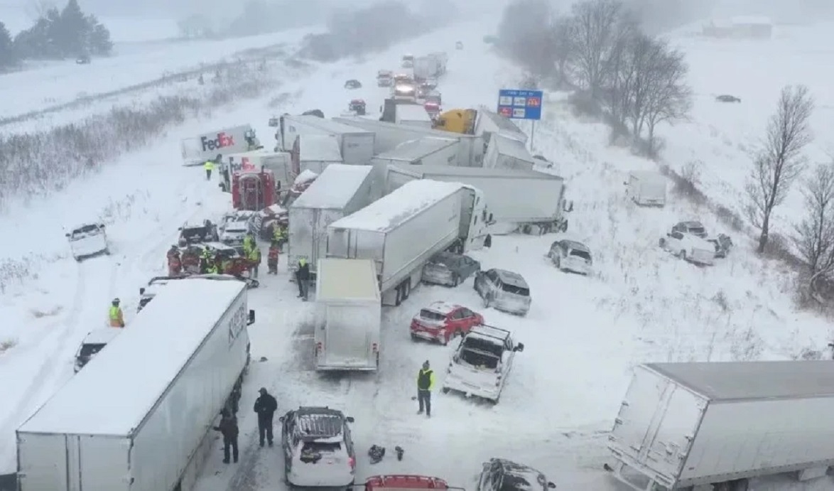 Un choque masivo de varios vehículos, que involucró a aproximadamente 100 automóviles y camiones, ha obligado a cerrar un tramo de la Interestatal 196...