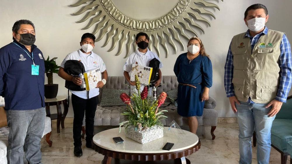 Luis Cach y José Rivero estudiantes mayas del Colegio Nacional de Educación profesional Técnica (Conalep), de Felipe Carrillo Puerto, compiten con el proyecto «Revalorización...