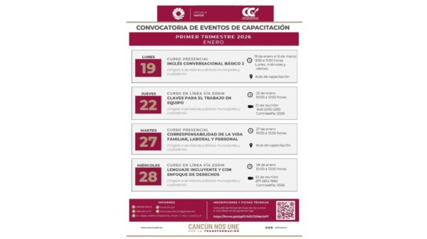 El Ayuntamiento de Benito Juárez, a través de la dirección general de Capacitación en Calidad, retoma los eventos de capacitación programados para este primer...