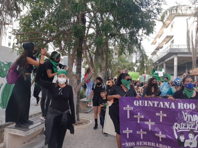 Más de 300 mujeres playenses marcharon para conmemorar El Día Internacional de la Mujer, en la Zona Turística de Playa del Carmen.