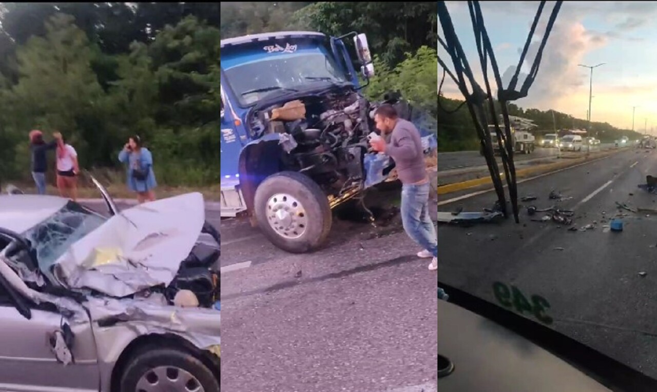 Un fatal accidente carretero tuvo lugar sobre la vía que conduce de Cancún a Playa del Carmen, donde se vieron involucrados varios vehículos y en los videos se puede apreciar al menos cuatro personas fallecidas.