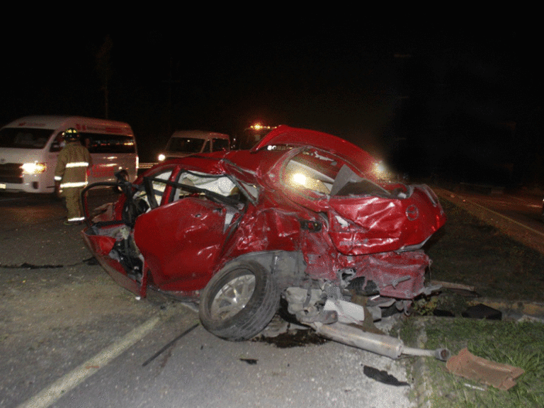 Playa del Carmen, Quintana Roo.- Aparatoso choque se registró la madrugada de este viernes en la carretera federal 307 en Playa del Carmen, y que dejó un saldo de seis personas lesionadas, incluyendo turistas extranjeros.