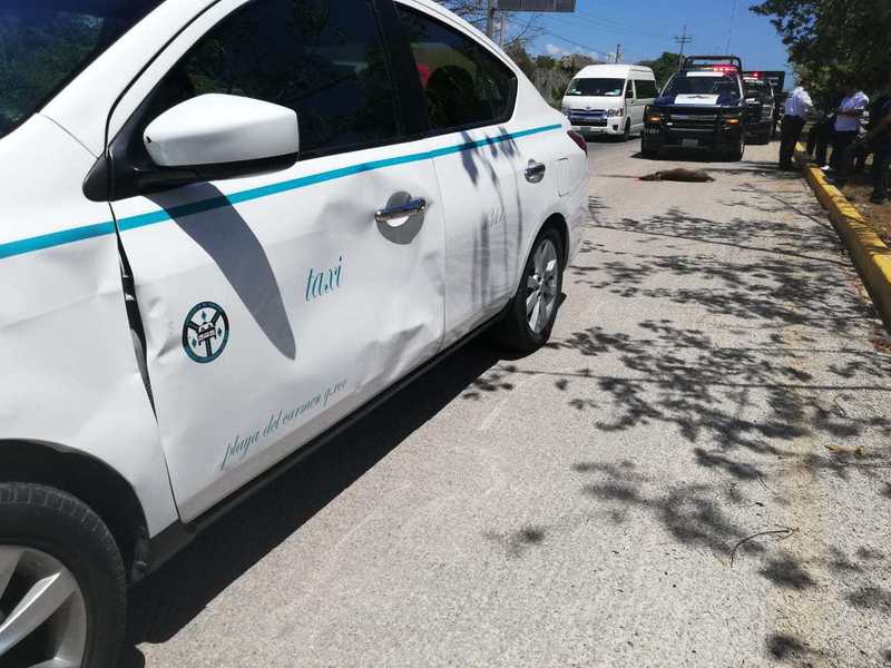 Los hechos se registraron pasada las 12:00 horas, en el kilómetro 285 de la vía Playa del Carmen-Tulum, a la altura de Chili Willys, en donde al animal le salió al paso al taxista que transitaba en ese momento.
