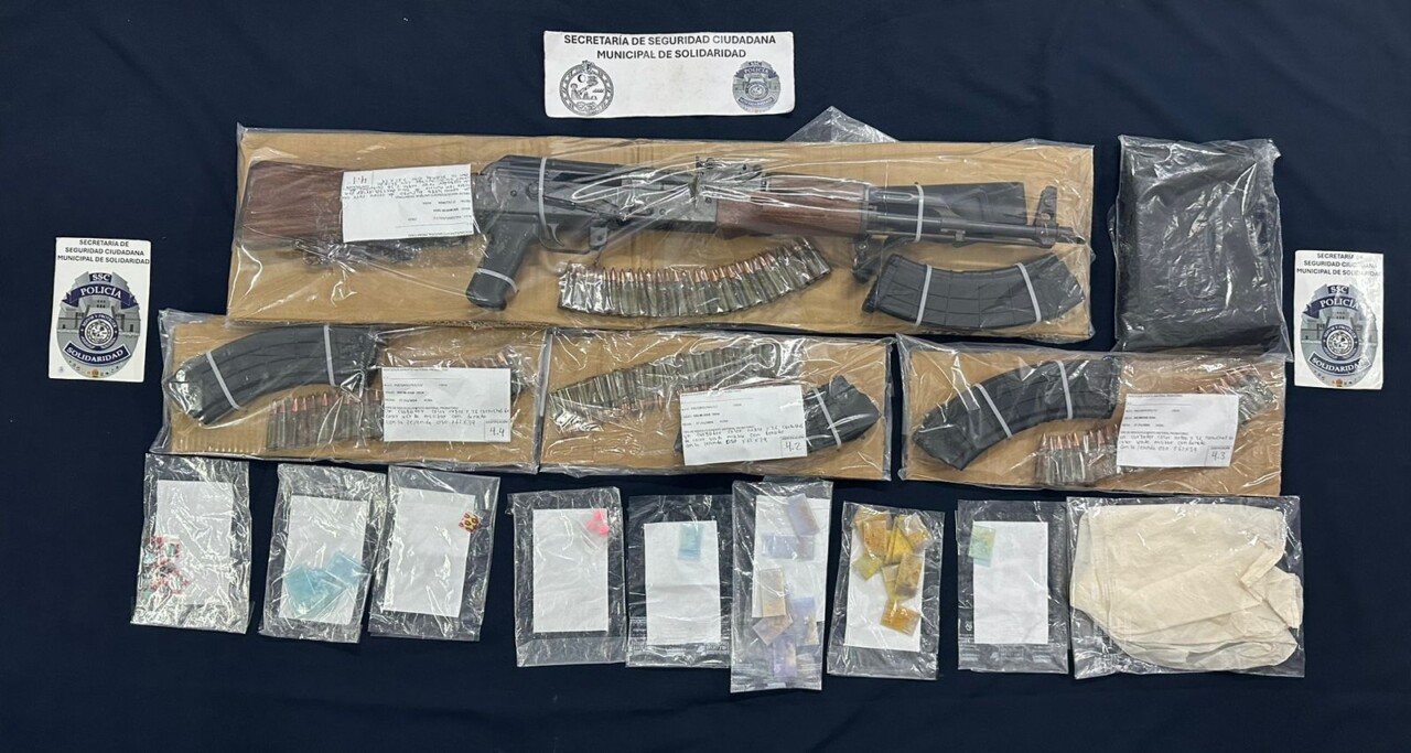 Durante el operativo, los oficiales encontraron a los detenidos con 43 envoltorios que contenían lo que se presume podrían ser narcóticos, además de un arma larga, AK-47 conocida como «cuerno de chivo» cuatro cargadores y 106 cartuchos de diferentes calibres.