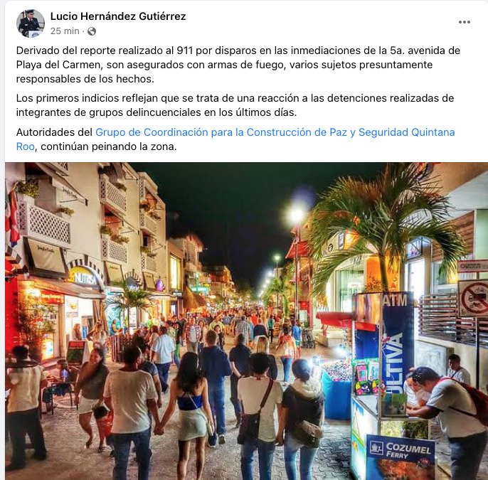 Por su parte, el Secretario de seguridad Pública de Quintana Roo, Lucio Hernández Gutierrez, consideró a través de un post en su perfil de Facebook, que estos hechos reflejan que se trata de una reacción a las detenciones realizadas de integrantes de grupos delincuenciales en los últimos días.
