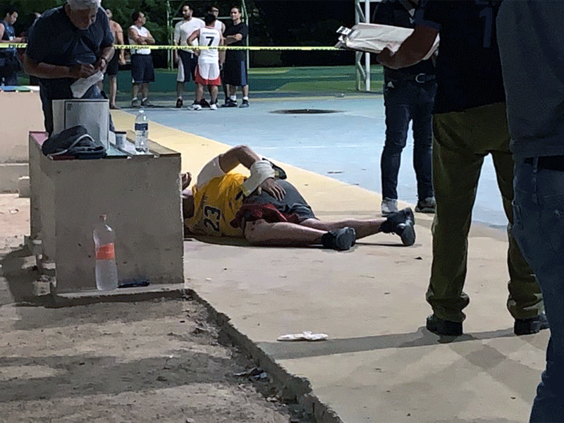 Un hombre de aproximadamente 50 años y de origen Israelí, fue atacado a balazos cuando jugaba basquetbol en el parque a la Madre.