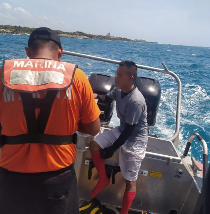 Buzo extraviado en aguas quintanarroenses es rescatado por la Marina, el despliegue de una unidad de búsqueda y rescate de la Secretaria de Marina (SEMAR) para tratar de ubicar a un turista que se había perdido mientras buceaba en el litoral de Playa Del Carmen, tuvo éxito al ser rescatado con vida el hombre.