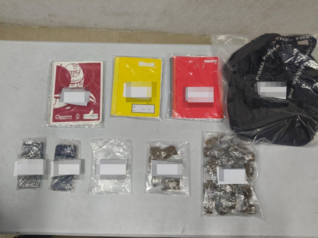 Además, de una mochila de color negro, un teléfono de la marca Samsung de color verde limón y otro de la marca Iphone de color rosa, así como el vehículo de color rojo de la marca Mitsubishi, modelo Mirage, con placas de circulación de Quintana Roo.