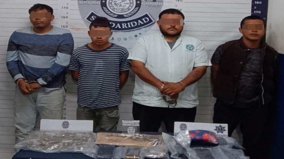 Por lo anterior, Luis «N», de 29 años de edad, originario de este estado; Luis «N», de 33 años, de Veracruz; Alonso «N», de 33 años originario de Chiapas y Gael «N», de 18 años proveniente de la Ciudad de México, fueron asegurados por los probables delitos contra la salud y violación a la Ley Federal de Armas de Fuego y Explosivos y puestos a disposición de la Fiscalía General del Estado (FGE), donde se determinará su situación legal.