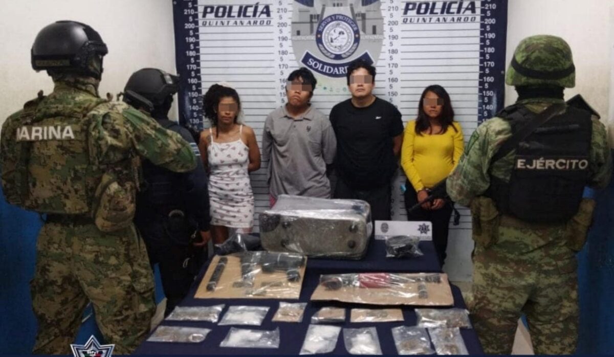Caen cuatro con armas y drogas en Villas del Sol de Playa del Carmen.