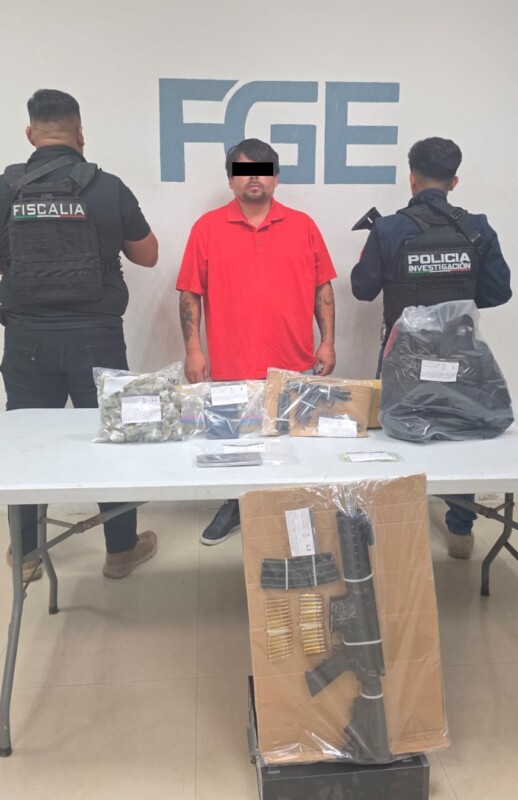Además, al sospechoso le fue asegurada un arma de fuego larga tipo fusil de asalto calibre 5.56 milímetros, junto con un cargador abastecido y cartuchos útiles, lo que motivó su detención inmediata.
