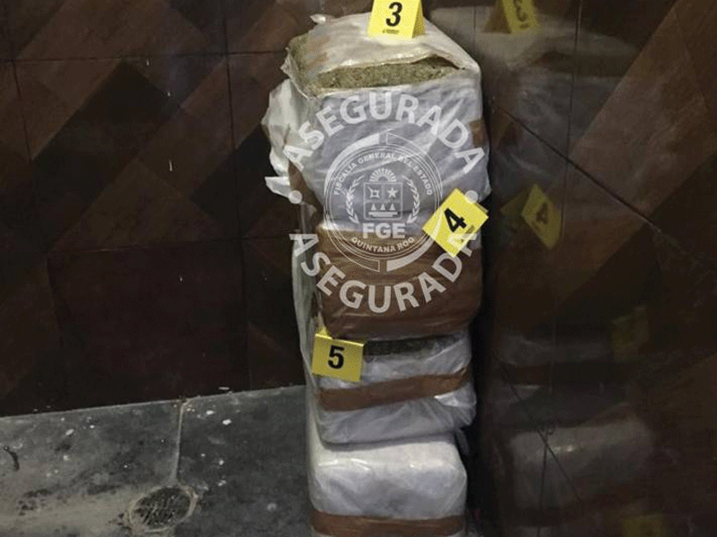 Playa del Carmen, Q. Roo – La Fiscalía General del Estado informa que policías ministeriales de investigación y fiscales del Ministerio Público realizaron un cateo en un domicilio de la colonia 28 de Julio, en Playa del Carmen, donde cinco paquetes con hierba verde y seca de características similares a la marihuana, fueron decomisados; fue un total de 50 Kg de droga.