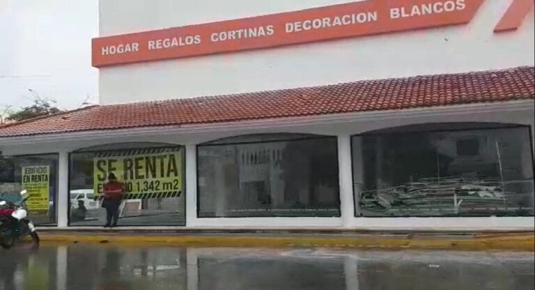 Ahora luce ya por completo vacío y ya tiene colgado el inmueble abandonado el letrero de “se renta”, que es ahora común ver por cualquier lado también en pequeños negocios con las cortinas cerradas.