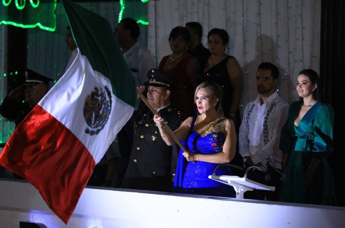 Antes de ello, el secretario general Juan Novelo mencionó los sentimientos de la nación, después se realizaron los honores al lábaro patrio y se le entregó a la edil por parte del abanderado de la escolta del 64vo Batallón de Infantería, después Lili Campos ingresó al palco municipal y desde allí, ante cientos de mexicanos y visitantes atiborrados en la Plaza Cívica 28 de Julio, dio el tradicional grito de independencia de México, celebrando 212 años.