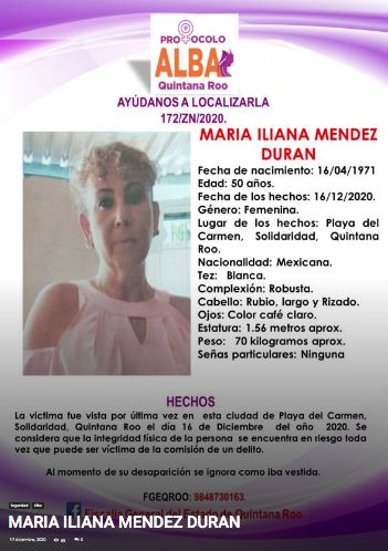 María Iliana Méndez Durán, lleva desaparecida desde el 16 de diciembre, para exigir a las autoridades de la Fiscalía General del Estado (FGE) que agilicen las investigaciones, familiares ya amigos realizaron hoy una marcha y manifestación.