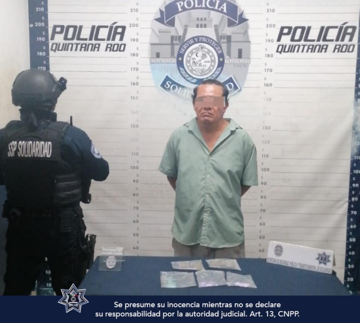 Y en otra acción fue asegurado Saúl «N», de 49 años, originario de Veracruz, en posesión de cinco envoltorios con posible marihuana, cinco con lo que parece cocaína y seis con la posible droga piedra, sobre la avenida Juárez con avenida 125 de la colonia Ejido.