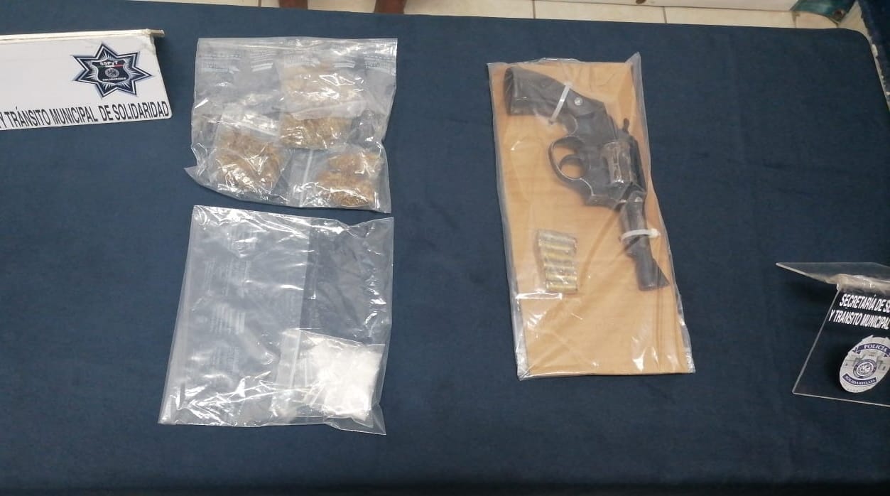 En tres acciones distintas, en Playa del Carmen fueron asegurados cinco sujetos, dos armas de fuego y 100 posibles dosis de droga.