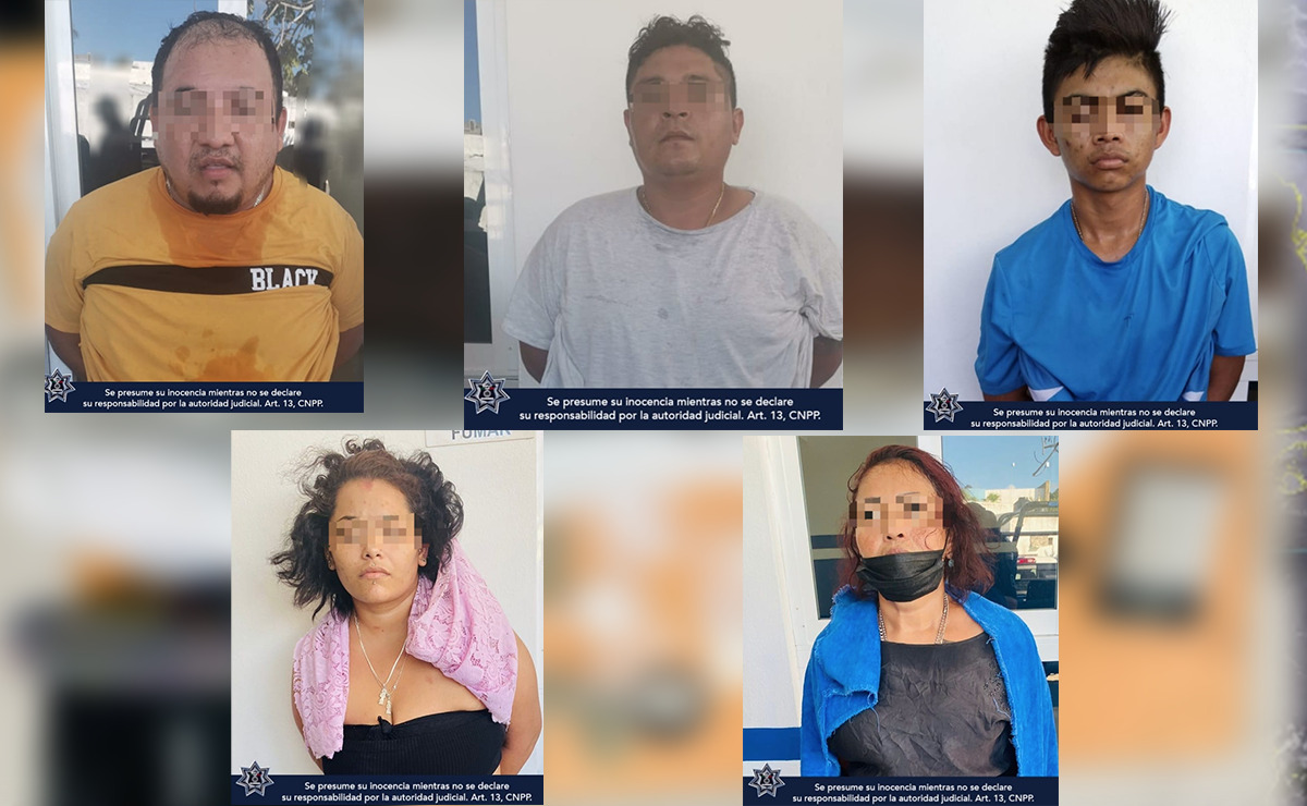 Los individuos detenidos fueron identificados como Mateo «N» de 27 años de edad, Marco «N» de 34 años, Pablo «N» de 19 años de edad, Paulina «N» de 24 años y Yesi «N» de 41 años, quienes fueron asegurados esta tarde por policías municipales.