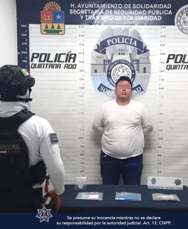 En otro punto de la ciudad, Fabián «N», de 23 años de edad, originario de Tabasco, fue asegurado sobre la Quinta Avenida con avenida Constituyentes, donde manipulaba envoltorios con lo que parecía ser marihuana.