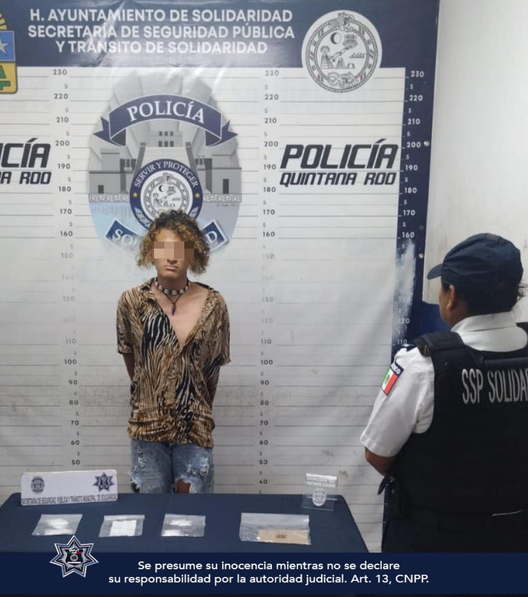 En otro hecho, la Policía Turística efectuó la detención de Santiago «N», de 20 años, originario de la Ciudad de México, quien fue sorprendido en flagrancia sobre la zona de playas manipulando envoltorios con posibles narcóticos y en la inspección le fueron asegurados 30 envoltorios con el posible narcótico llamado cristal y 3 cartuchos útiles.