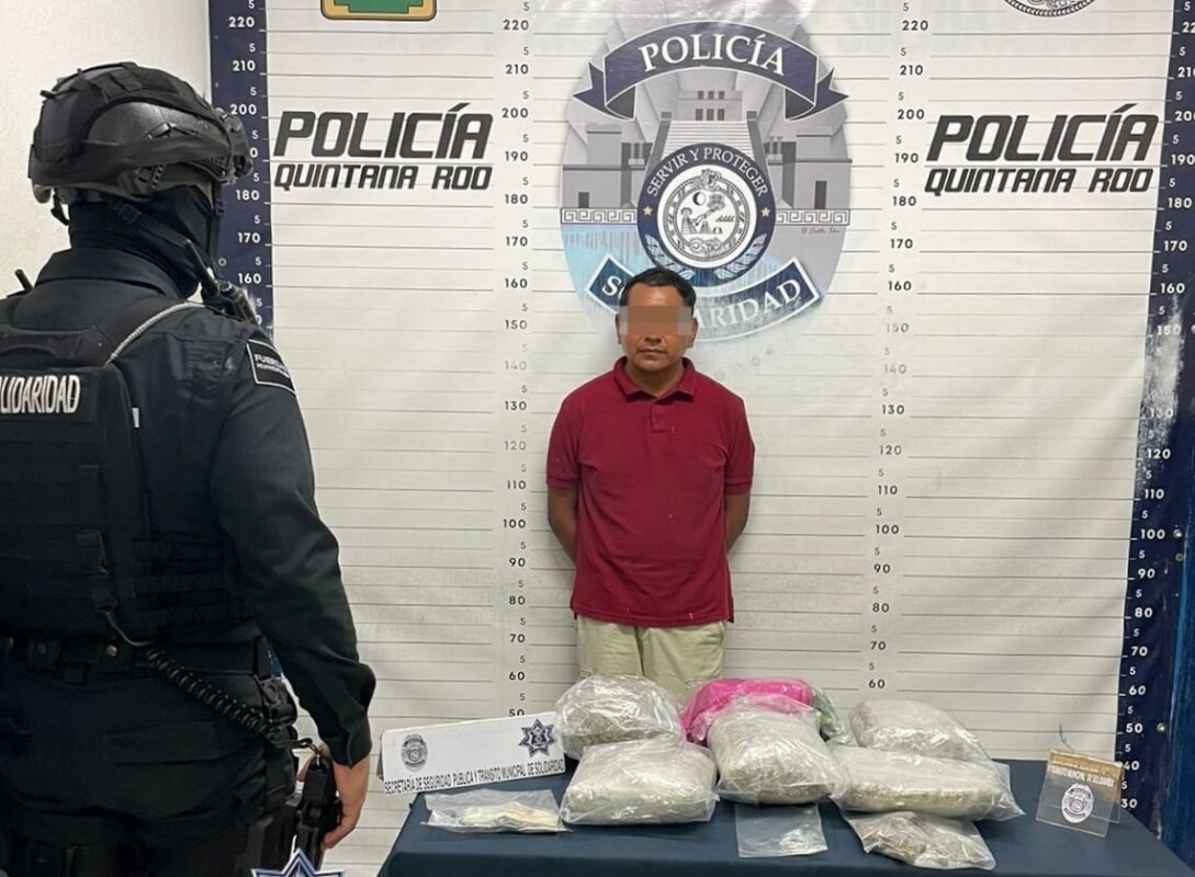 Detienen a sujeto con paquetes de droga en la Colosio de Playa del Carmen; A José “N” le decomisaron marihuana y “piedra”.