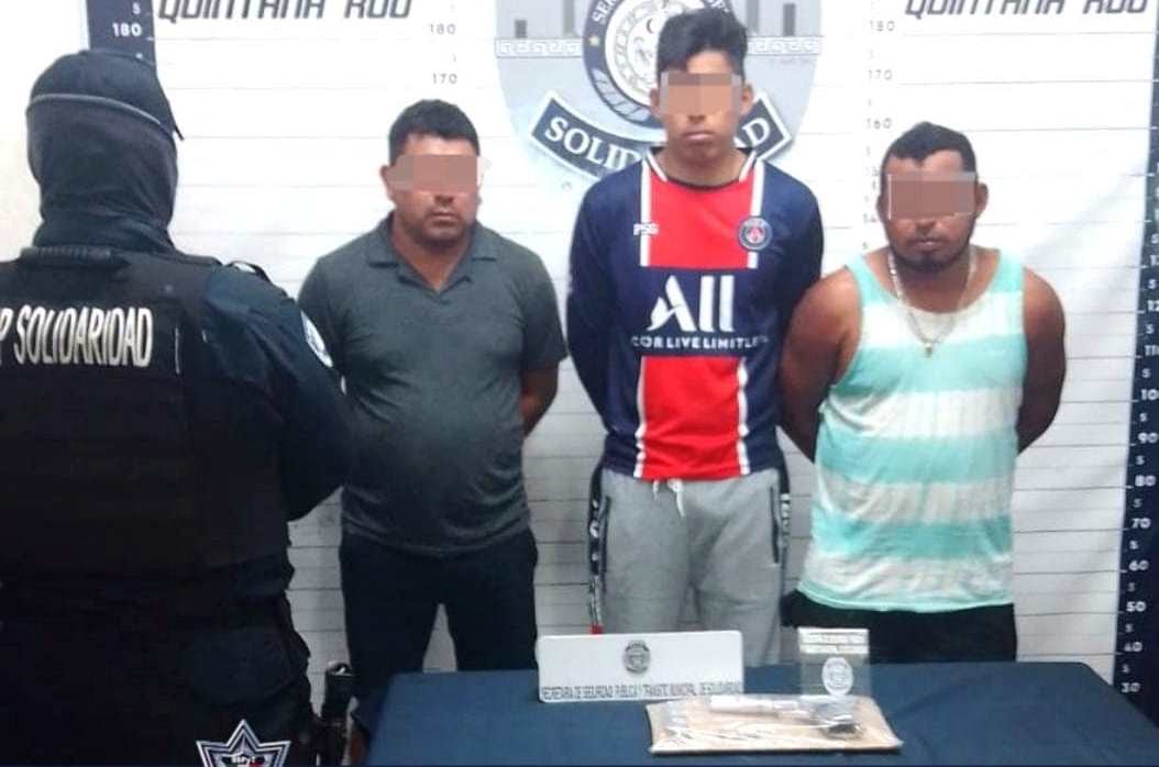 Los oficiales de la Policía Preventiva patrullaban por la calle Primera Sur con avenida Juárez, la madrugada de este viernes, donde se realizó la detención de quienes responden a los nombres de Mateo «N», de 38 años de edad, originario de Chiapas; Sergio «N», de 36 años de edad, procedente de Veracruz y Cristopher «N», de 21 años, oriundo de Tabasco.