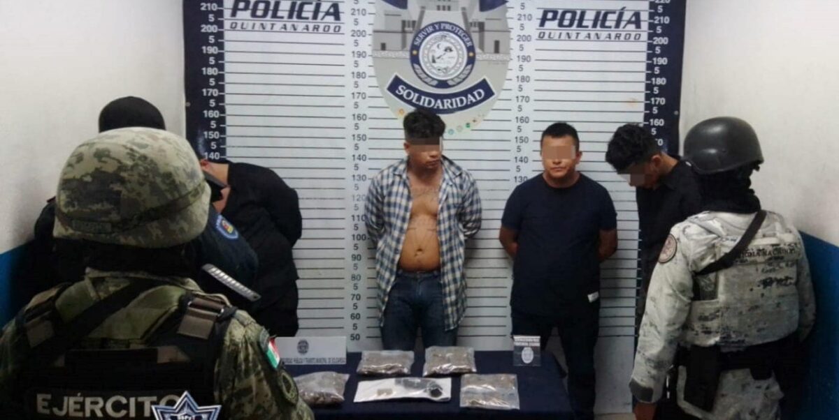 Detienen con drogas y un arma a cuatro sujetos en la colonia Centro de Playa del Carmen
