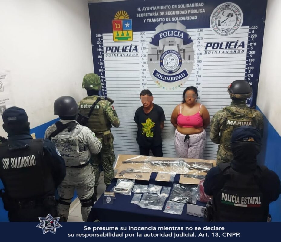 Una pareja de presuntos narcomenudistas que además se encontraban en posesión de un par de armas de fuego, fueron detenidos en el municipio de Solidaridad (Playa del Carmen) por un operativo de los tres niveles de gobierno.