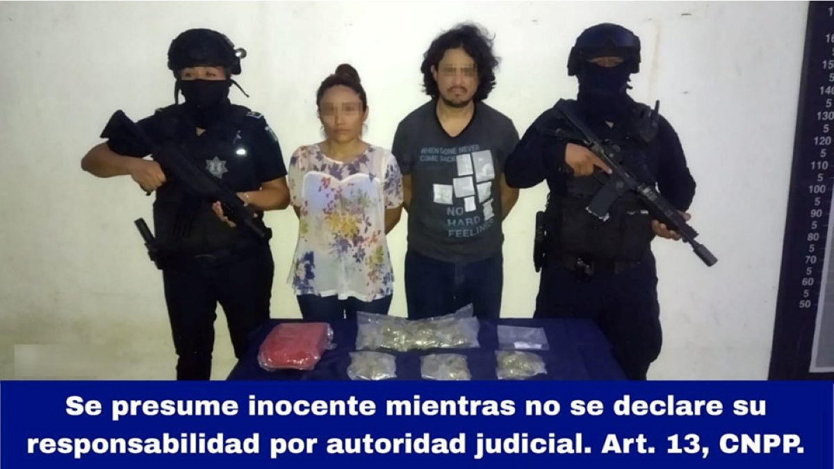 Detienen en Playa del Carmen a pareja de narcomenudistas; a Héctor “N” y Yara “N” les decomisaron más de 40 dosis de enervantes.