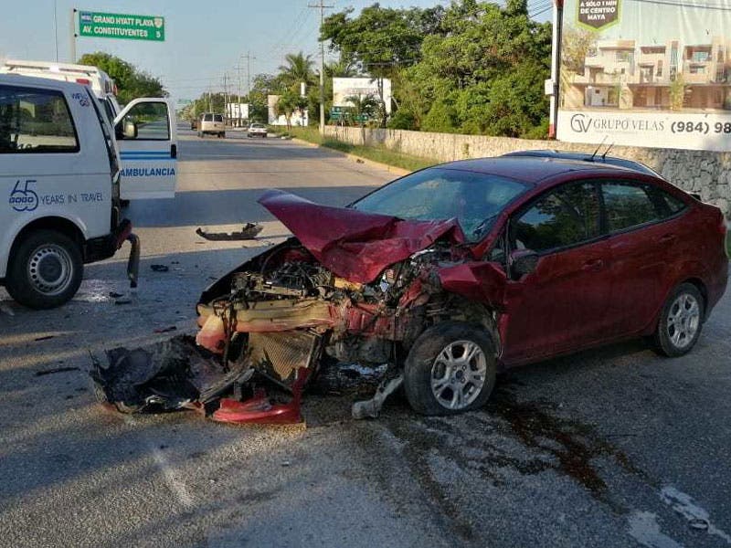 Saldo de dos personas con golpes menores, fue el resultado de un accidente automovilístico ocurrido esta mañana en la carretera a Playa del Carmen.