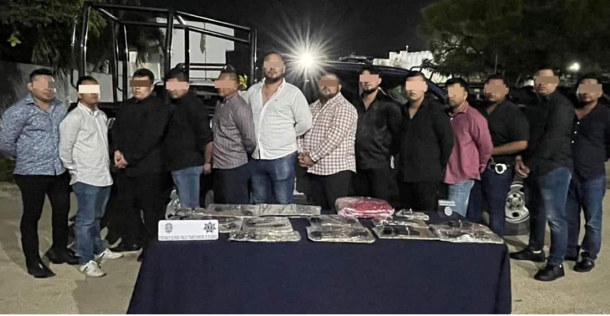 En Playa del Carmen detienen a 13 sujetos armados; viajaban en dos camionetas cuando les marcaron el alto; traían pistolas .9 mm y .380.