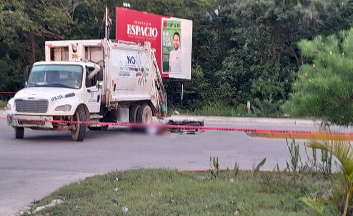 En Playa del Carmen muere un motociclista al impactarse contra camión de la basura; el accidente se produjo cuando el chofer viró bruscamente.