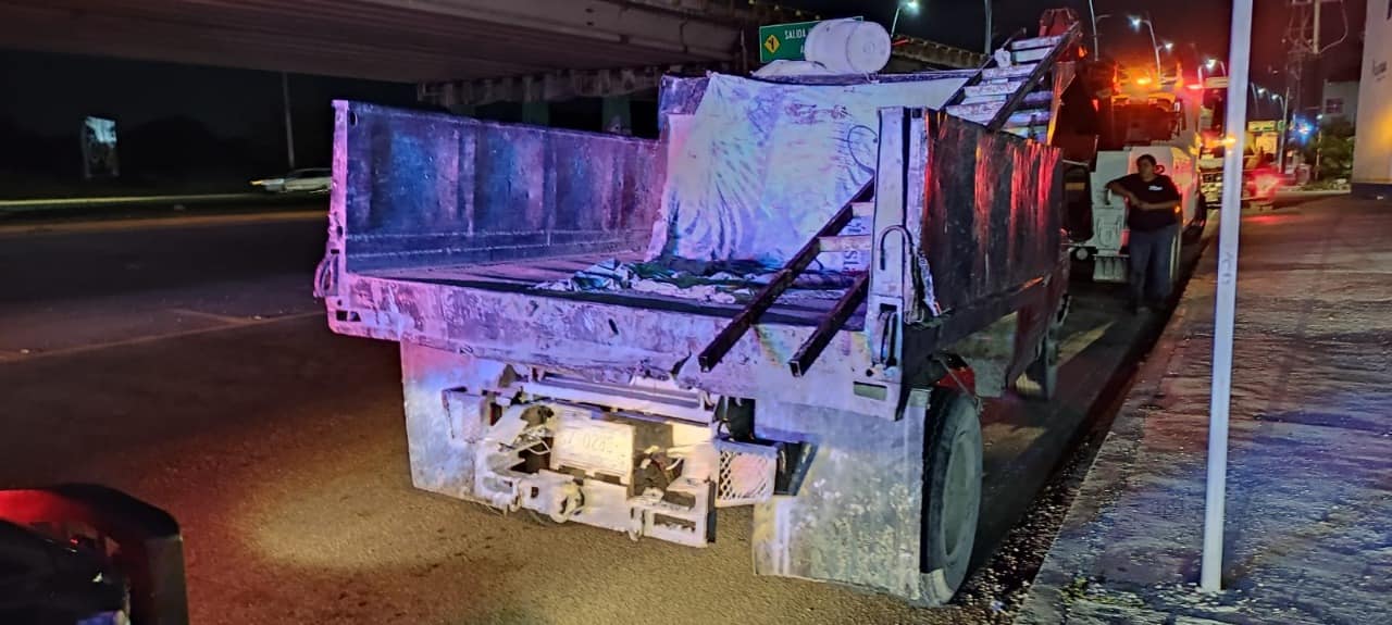 Fallece una mujer al caer de un volquete en el Bulevar Playa del Carmen; la pesada unidad dio un acelerón para subir el puente de la CTM.