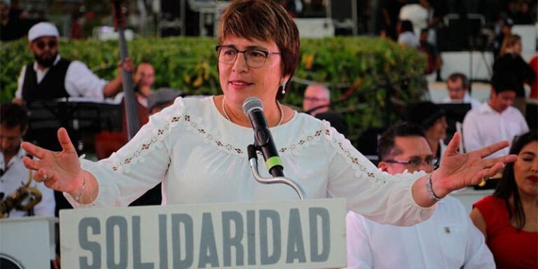La presidenta municipal de Solidaridad, Laura Beristain Navarrete sorprendió a propios y extraños la tarde de ayer, pues ante cientos de personas reunidas con motivo de las bodas colectivas, pidió matrimonio a su novia de hace 14 años, Karla Robles Miranda, quien actualmente se desempeña como titular del DIF municipal, en la administración de Beristain.